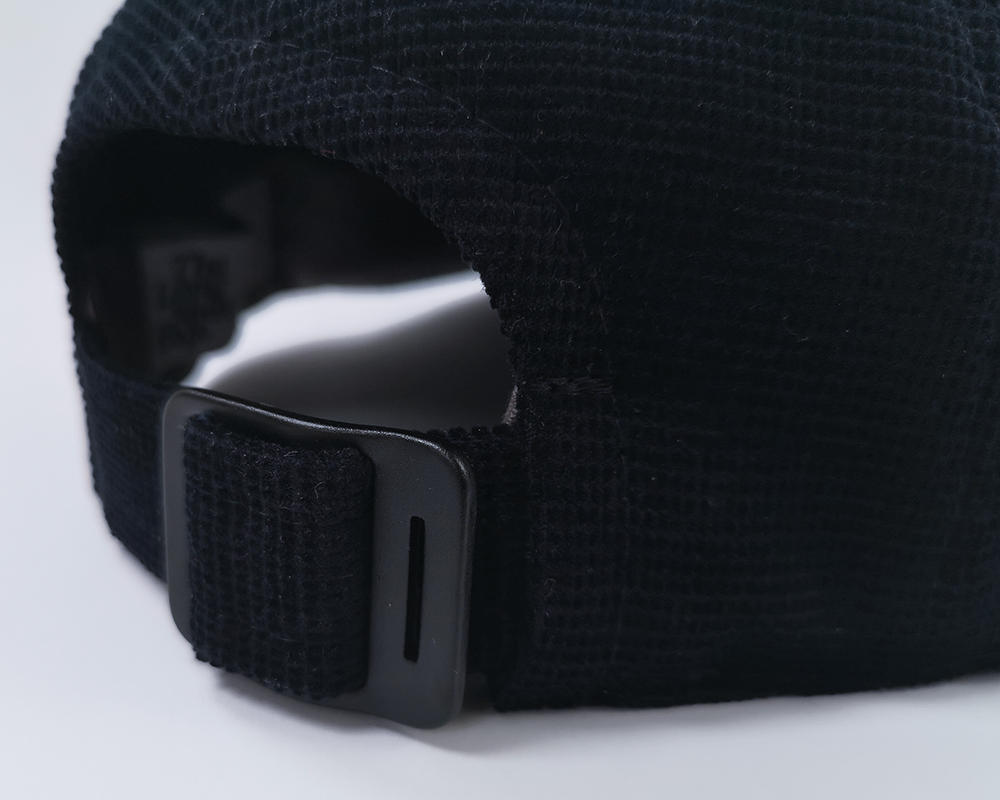 A black aluminium tension lock allows for size adjustment. Our firm but soft, recycled leatherboard peak allows us to craft the best shape with a premium finish.