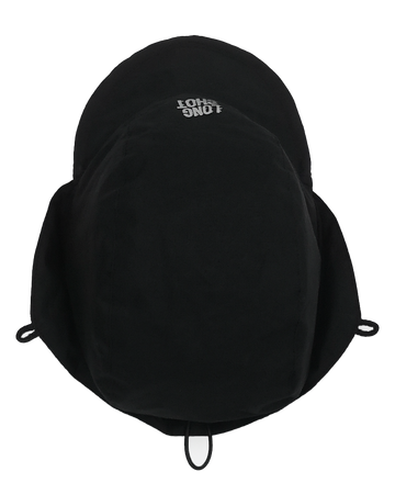 For this All Black Everything version we’ve used the organic R140 rip-stop, dry waxed cotton from Halley Stevensons of Dundee. The lining is a 'warp knitted polyester micro fleece woven in Nottingham, and the peak is reinforced with a wire insert. An elastic shock-cord allows adjustment of size right around the head, making it a ‘one size fits all’ hat that does actually fit everyone comfortably. Following our mantra of ‘Aesthetics over Athletics’ we’ve even kept those little loops on the earflap which seemingly serve no other purpose than to look really tech and cool.